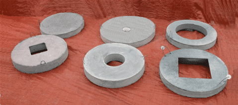 Concrete Covers Home » Concrete Covers Concrete Cover Specifications SIZE TYPE OPENING THICKNESS 32" O.D. Concrete none, 4" PVC, 12"x12", 18"x18", 20" round, 24" round & custom 4", 6" & custom 36" O.D. Concrete none, 4" PVC, 12"x12", 18"x18", 20" round, 24" round & custom 4", 6" & custom
